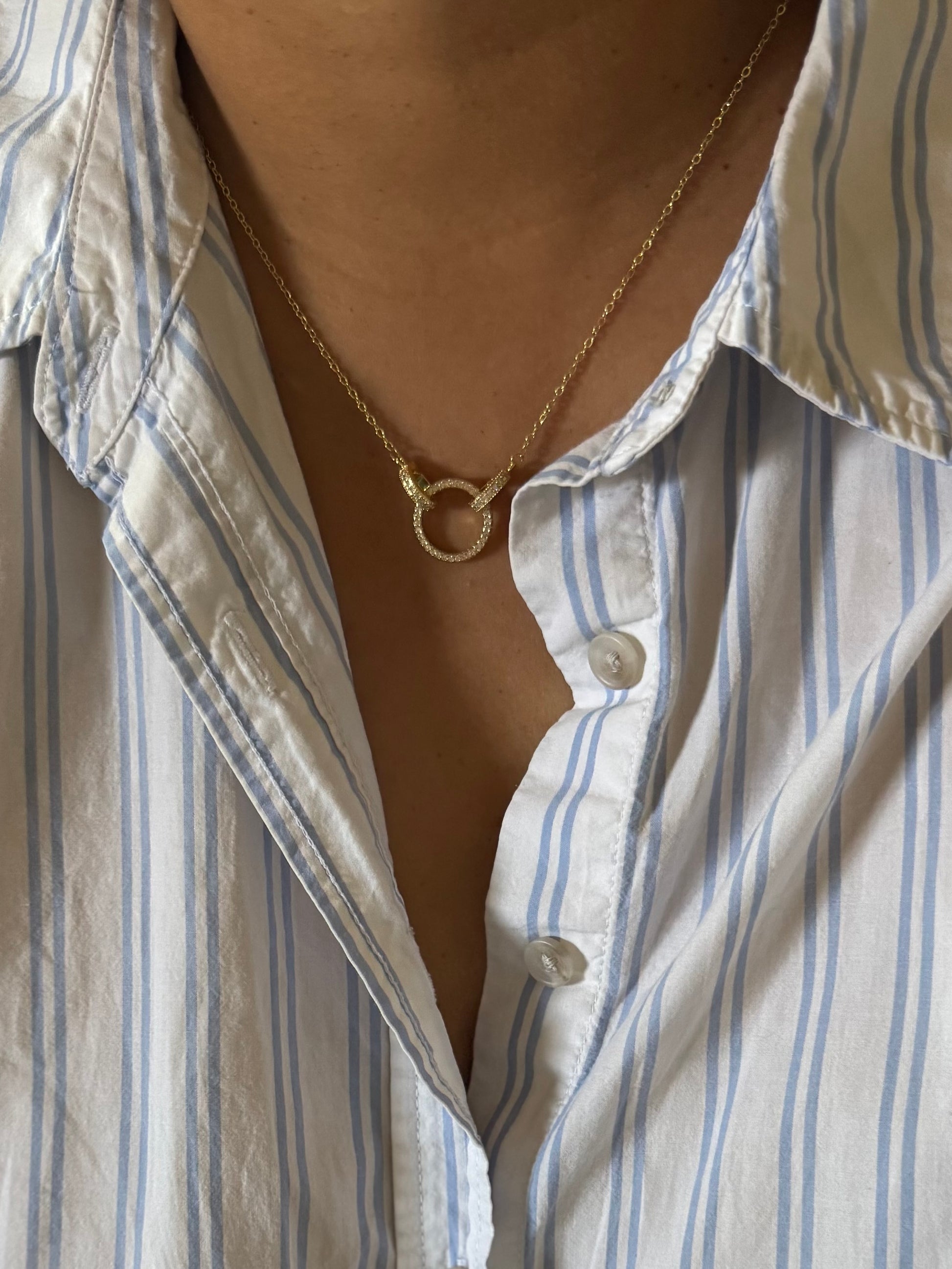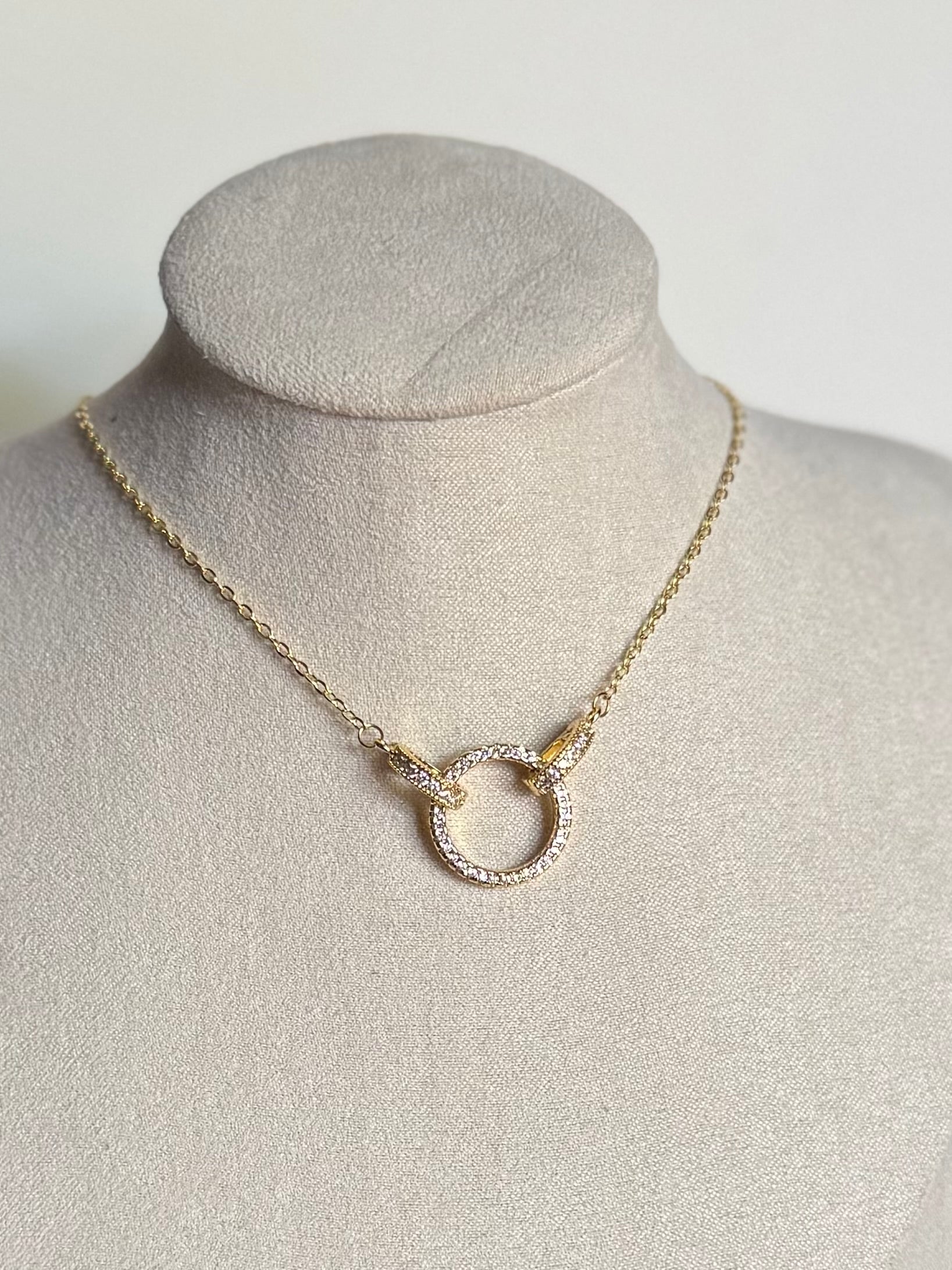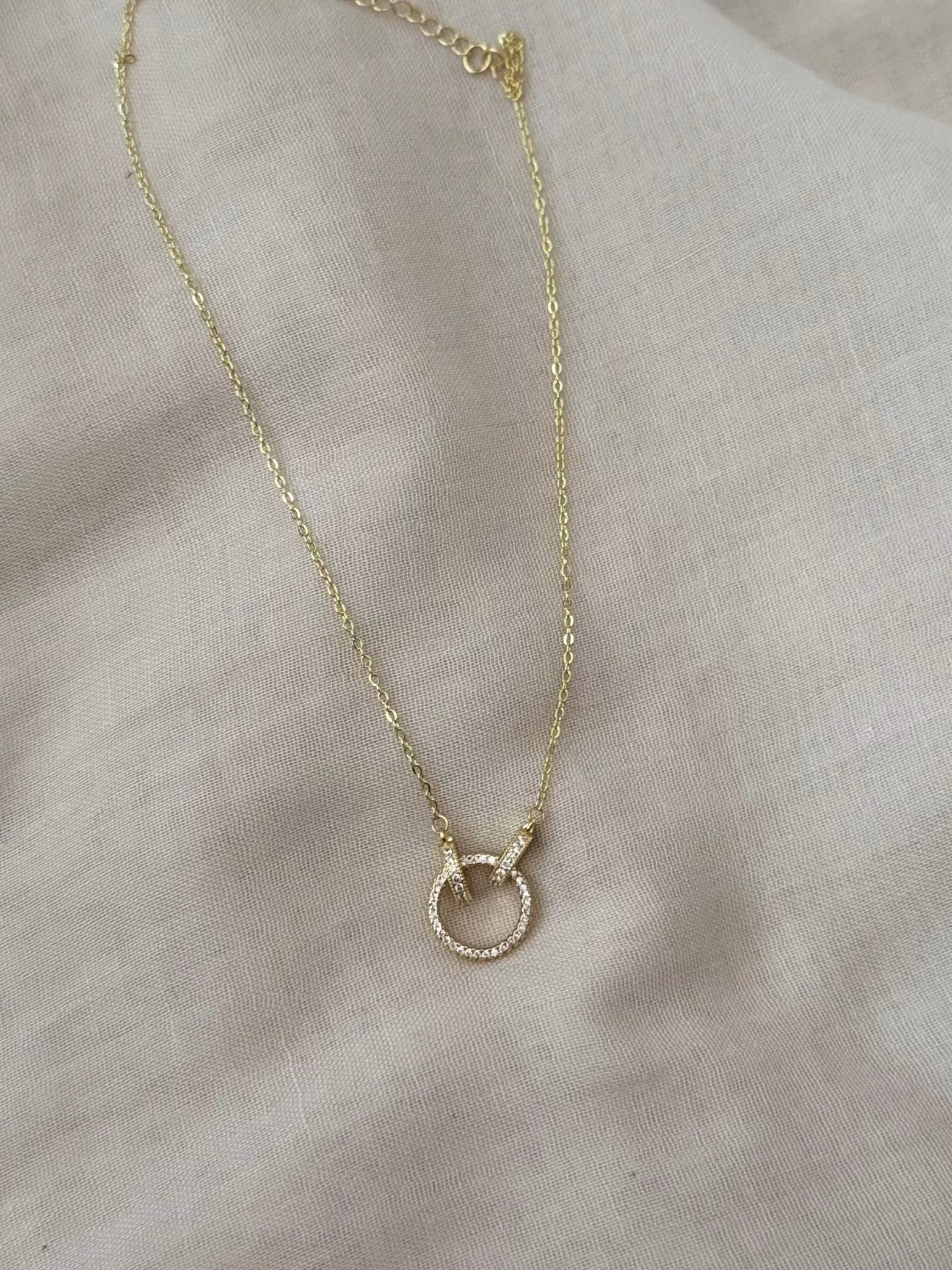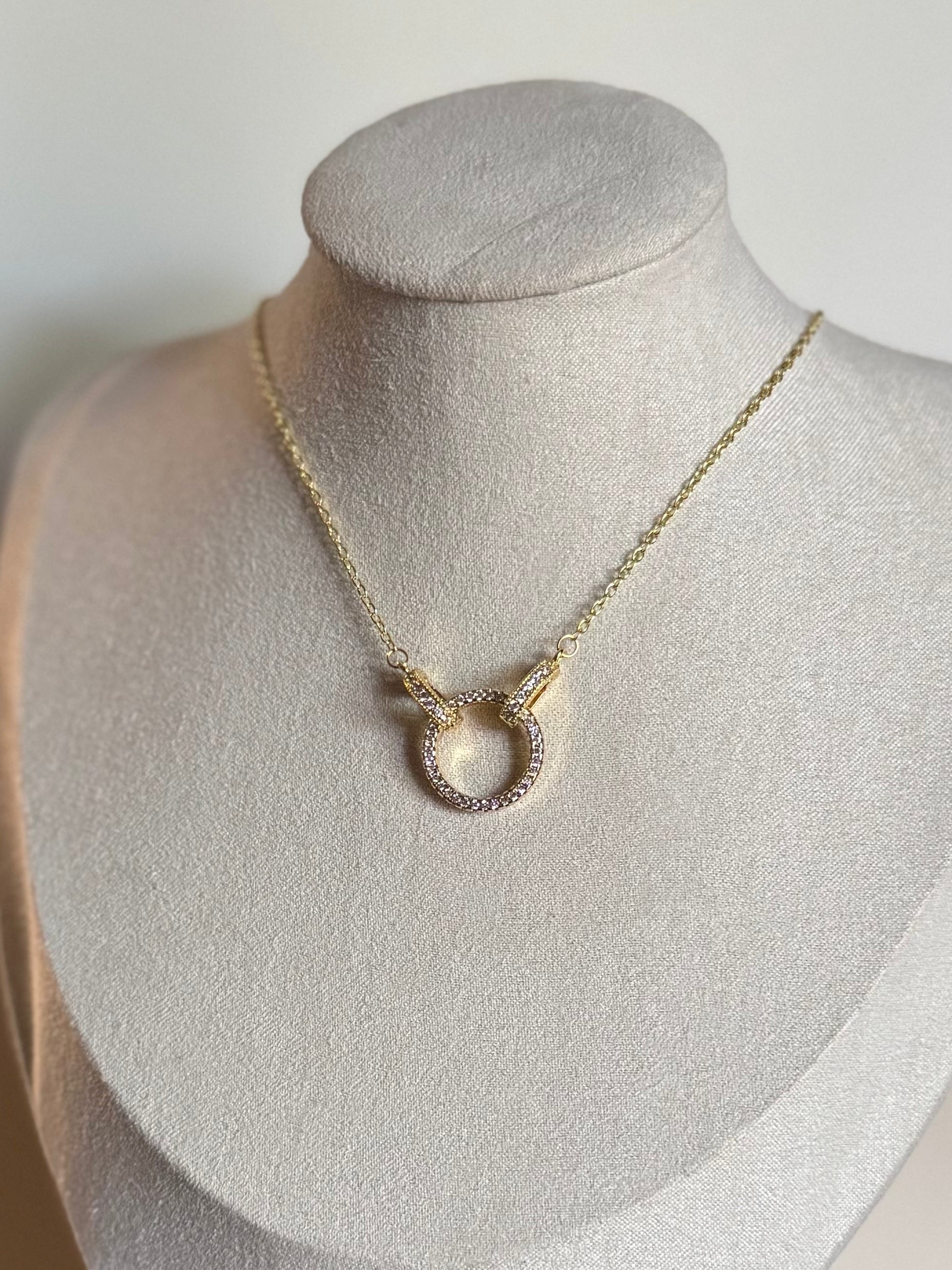 Meet Claire - a dainty necklace that radiates posh vibes. Adorned with a circle pave charm and connectors, it's perfect for adding a touch of elegance to any outfit. Treat yourself or a loved one to this charming accessory.