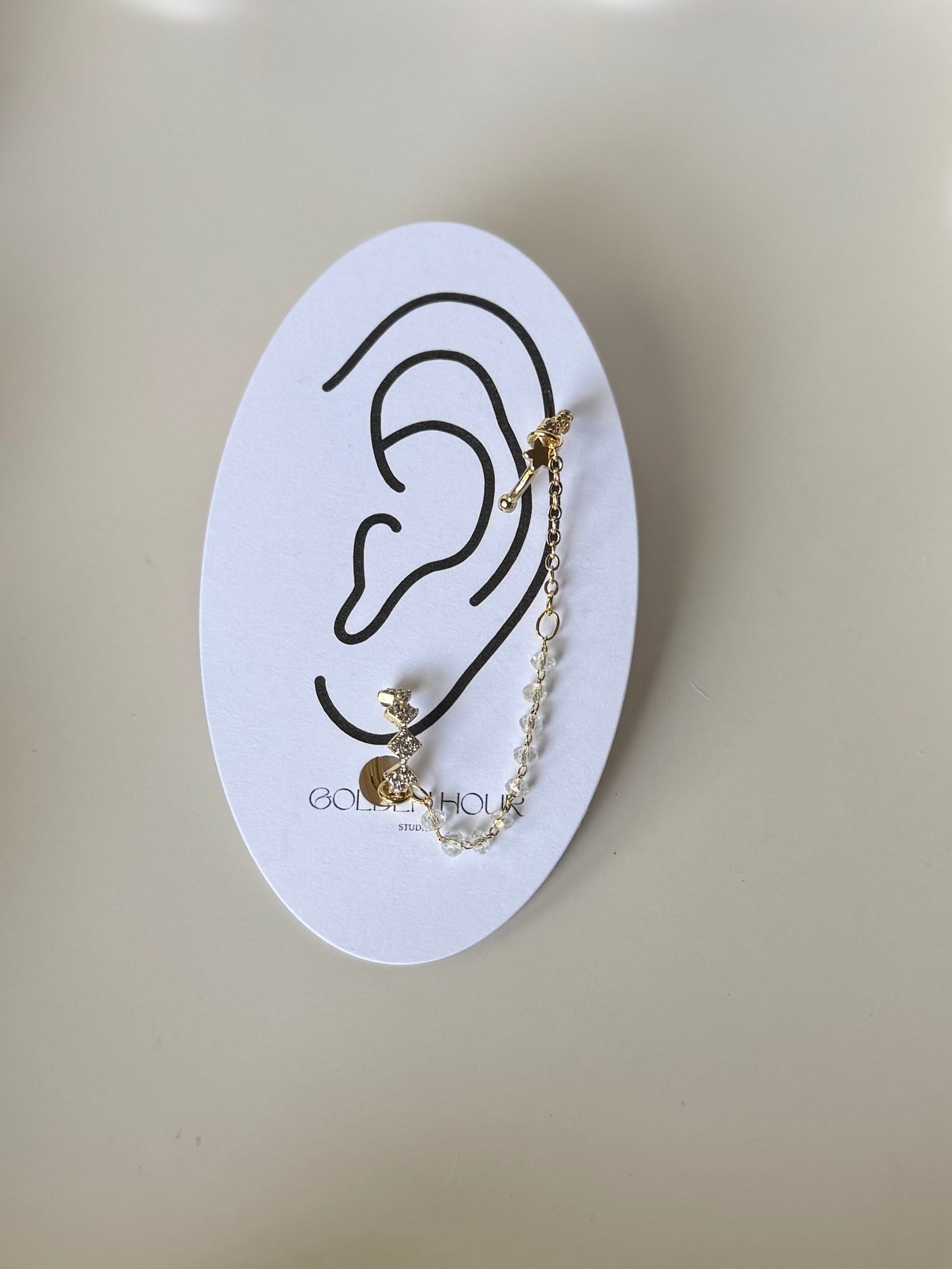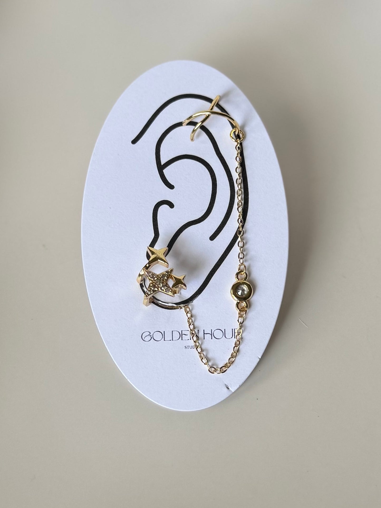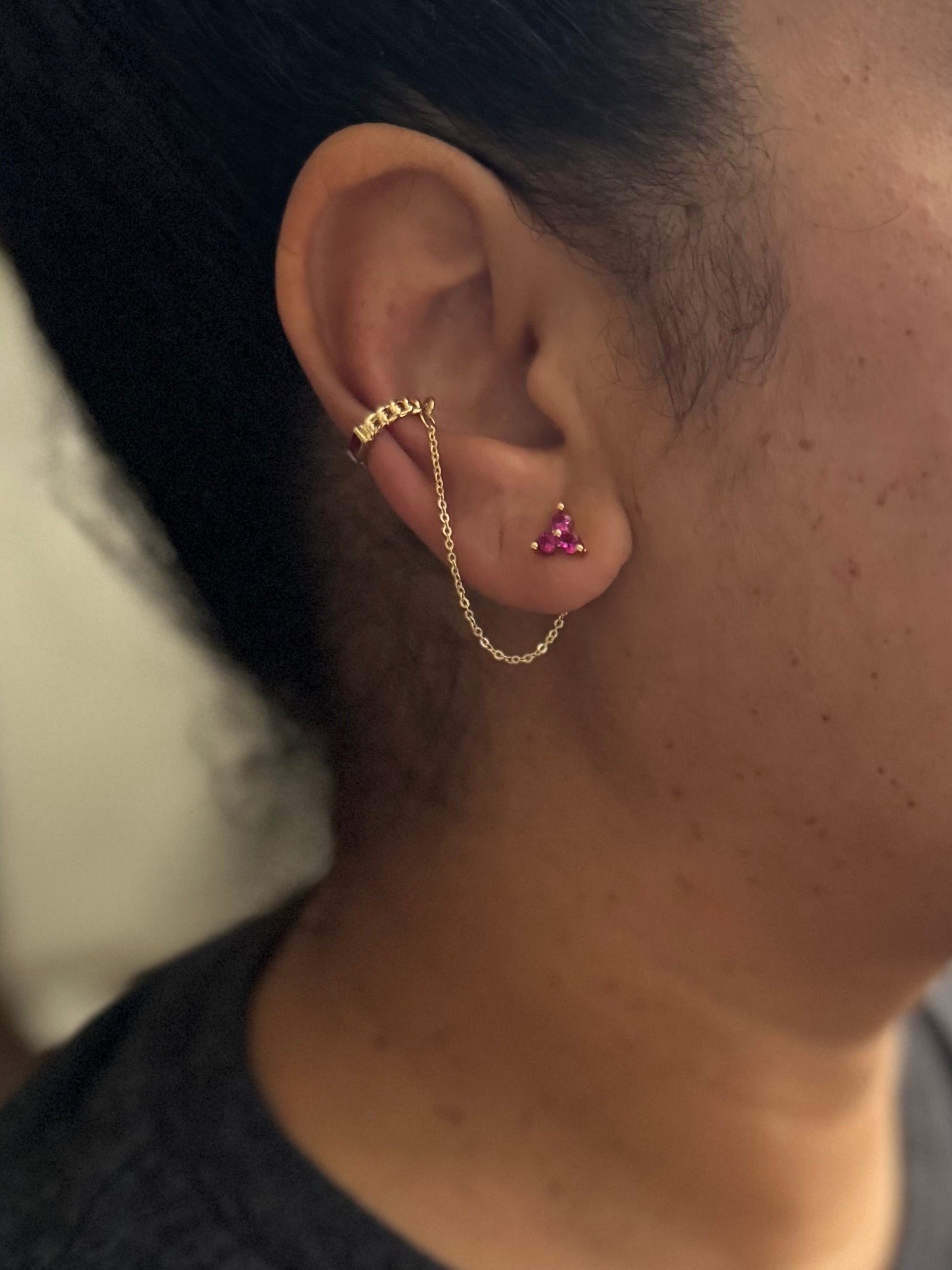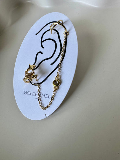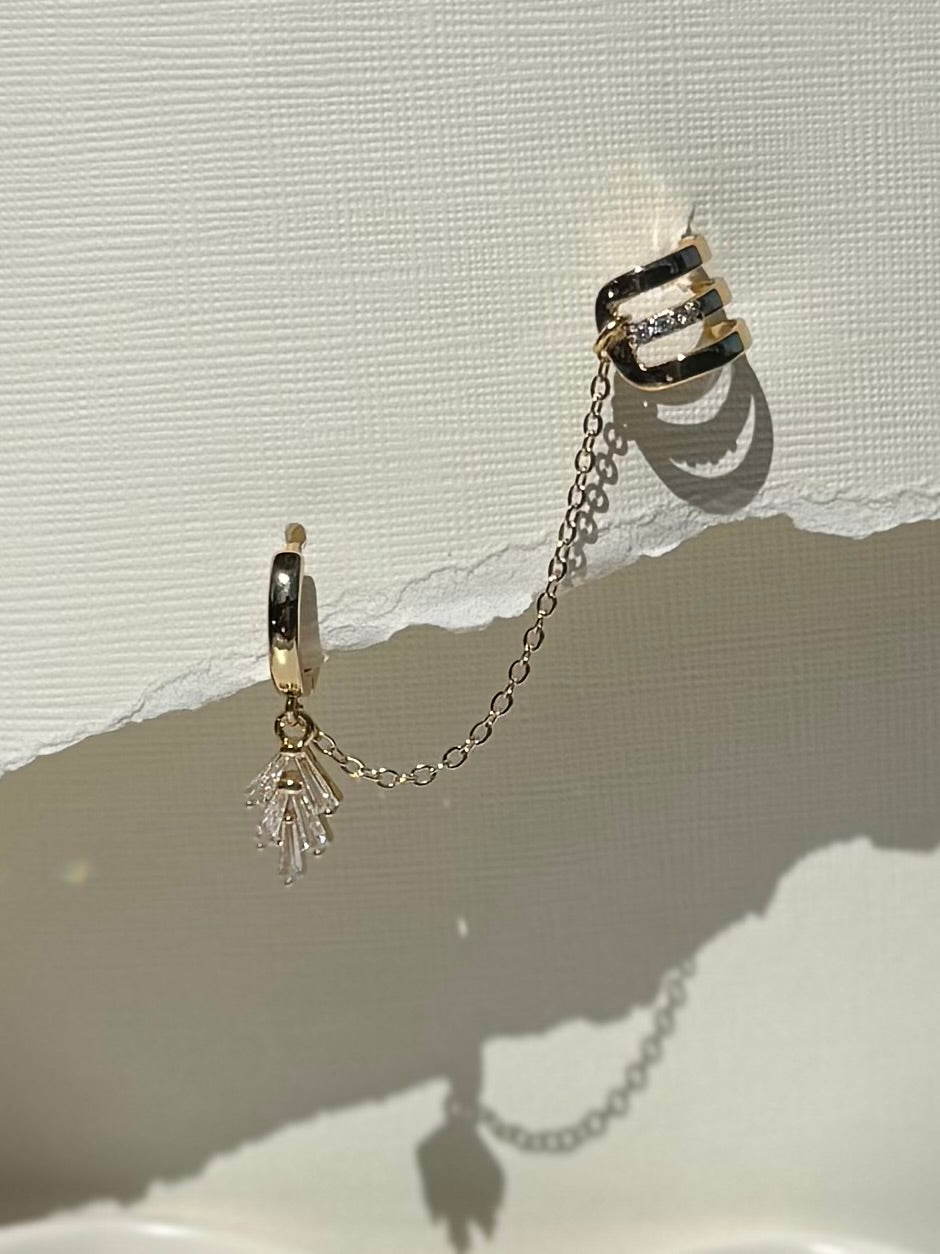 - 1 side is designed as a ear stack, the attached ear cuffs are slightly adjustable and do not require you to have a pierced ear up top.