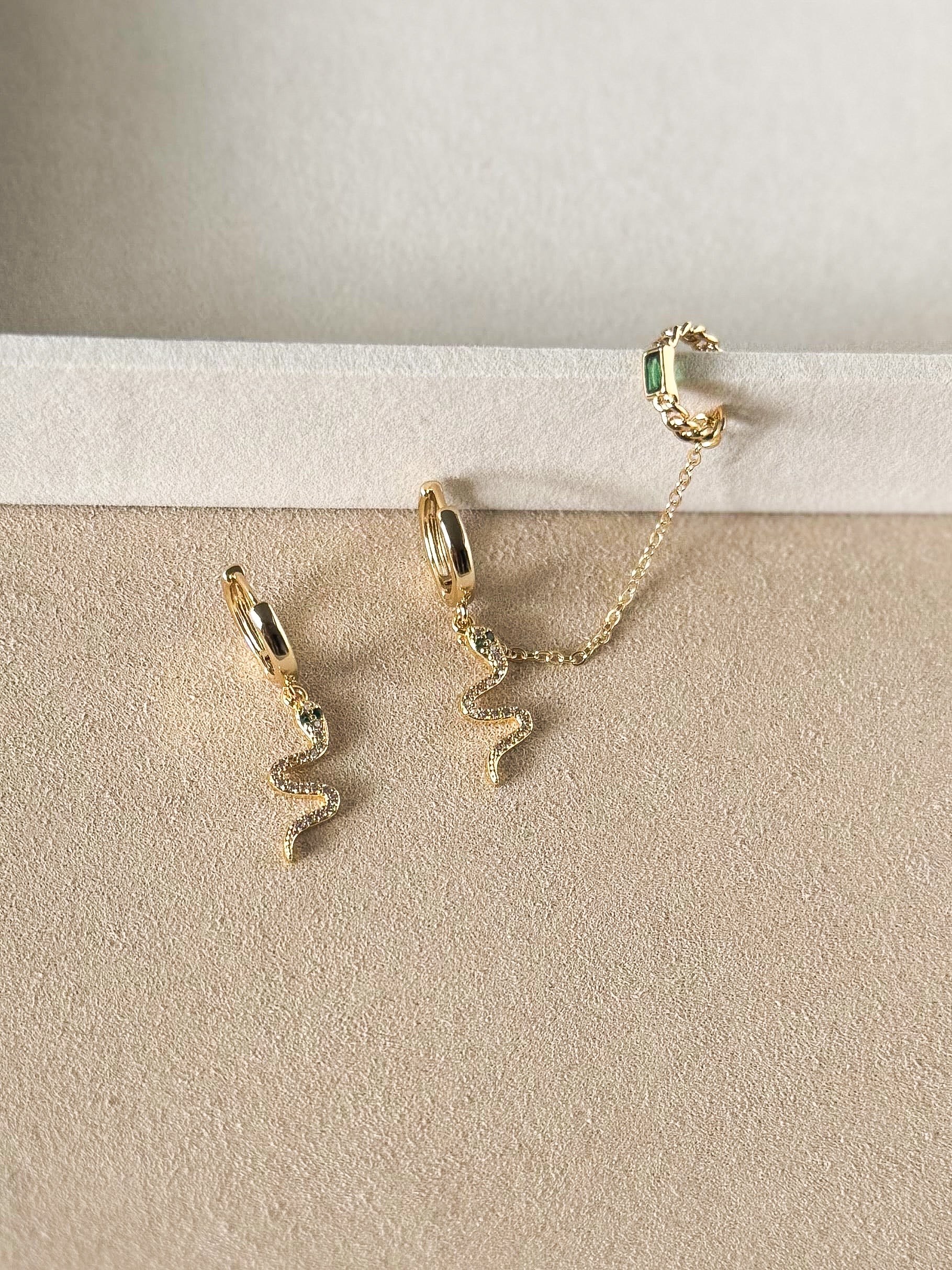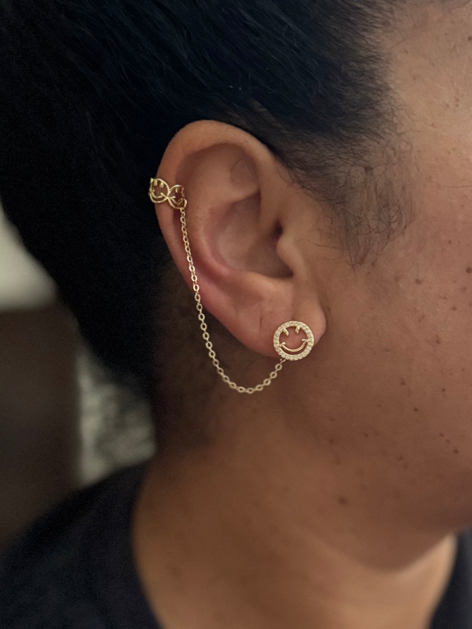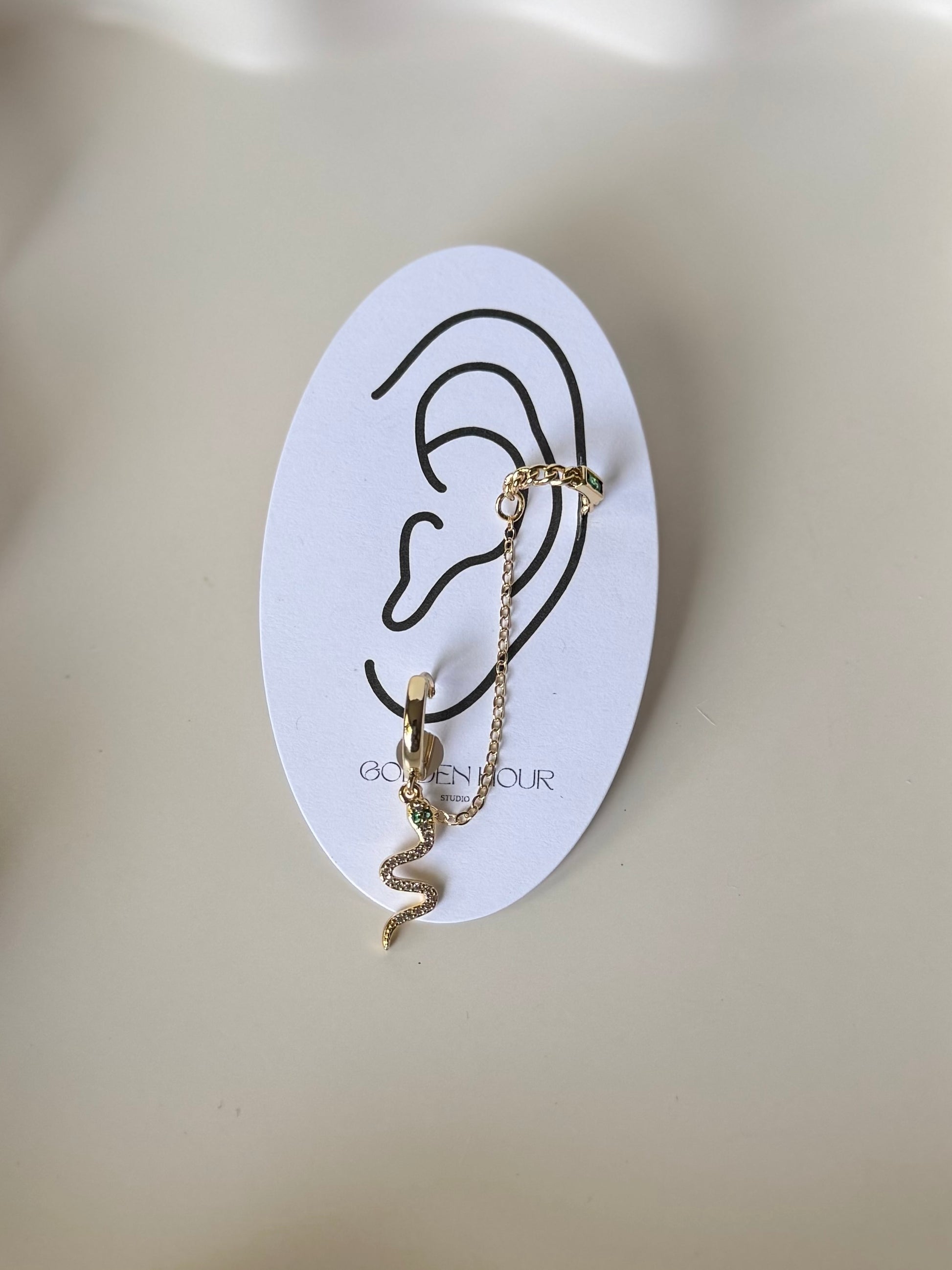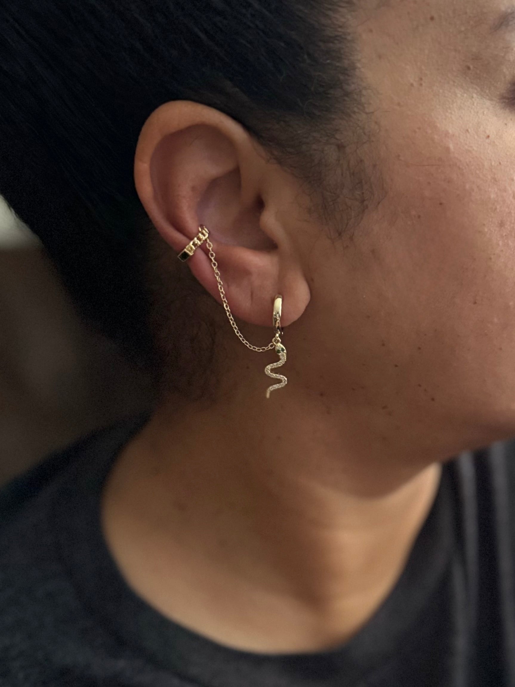 - 1 side is designed as a ear stack, the attached ear cuffs are slightly adjustable and do not require you to have a pierced ear up top.