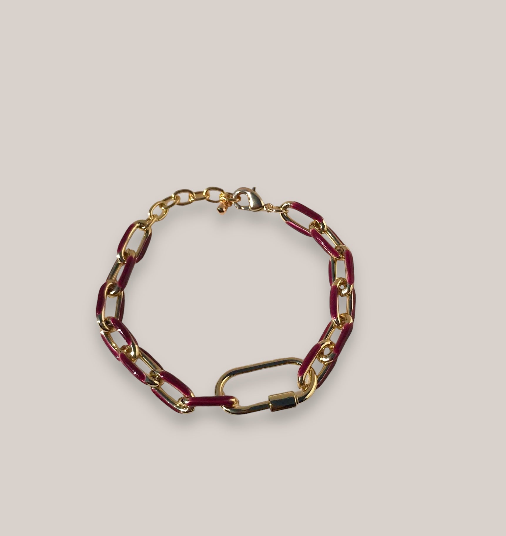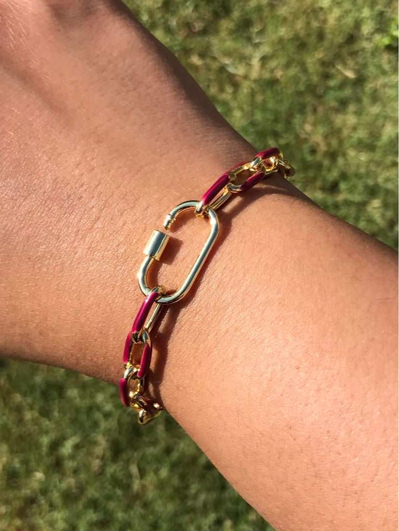 This fall link bracelet is the perfect accessory for any occasion. Crafted with gold plating and maroon enamel, this bracelet features a link lock. With its fun yet sophisticated design, this beautiful bracelet is sure to become a staple item for any jewelry collection.