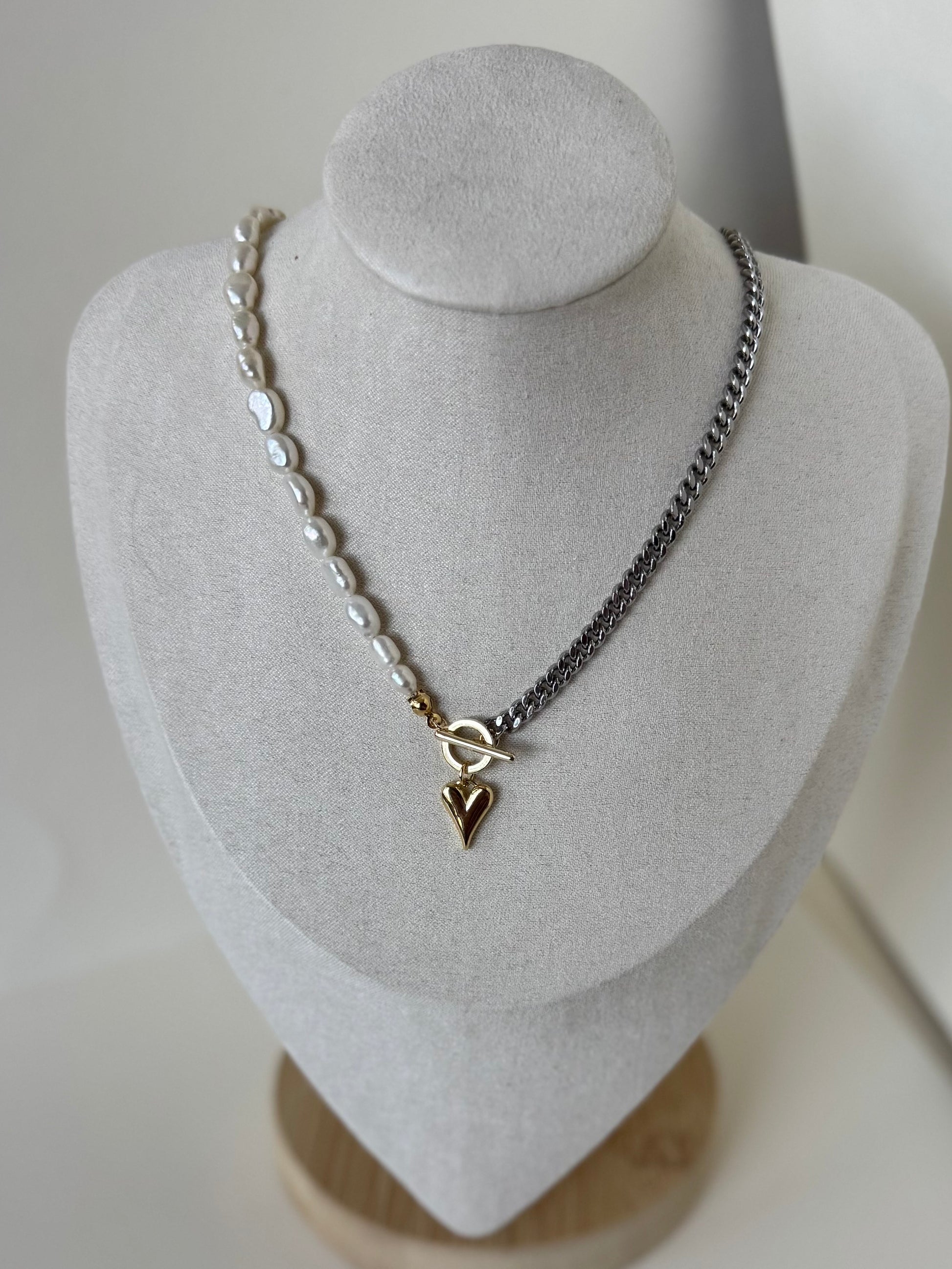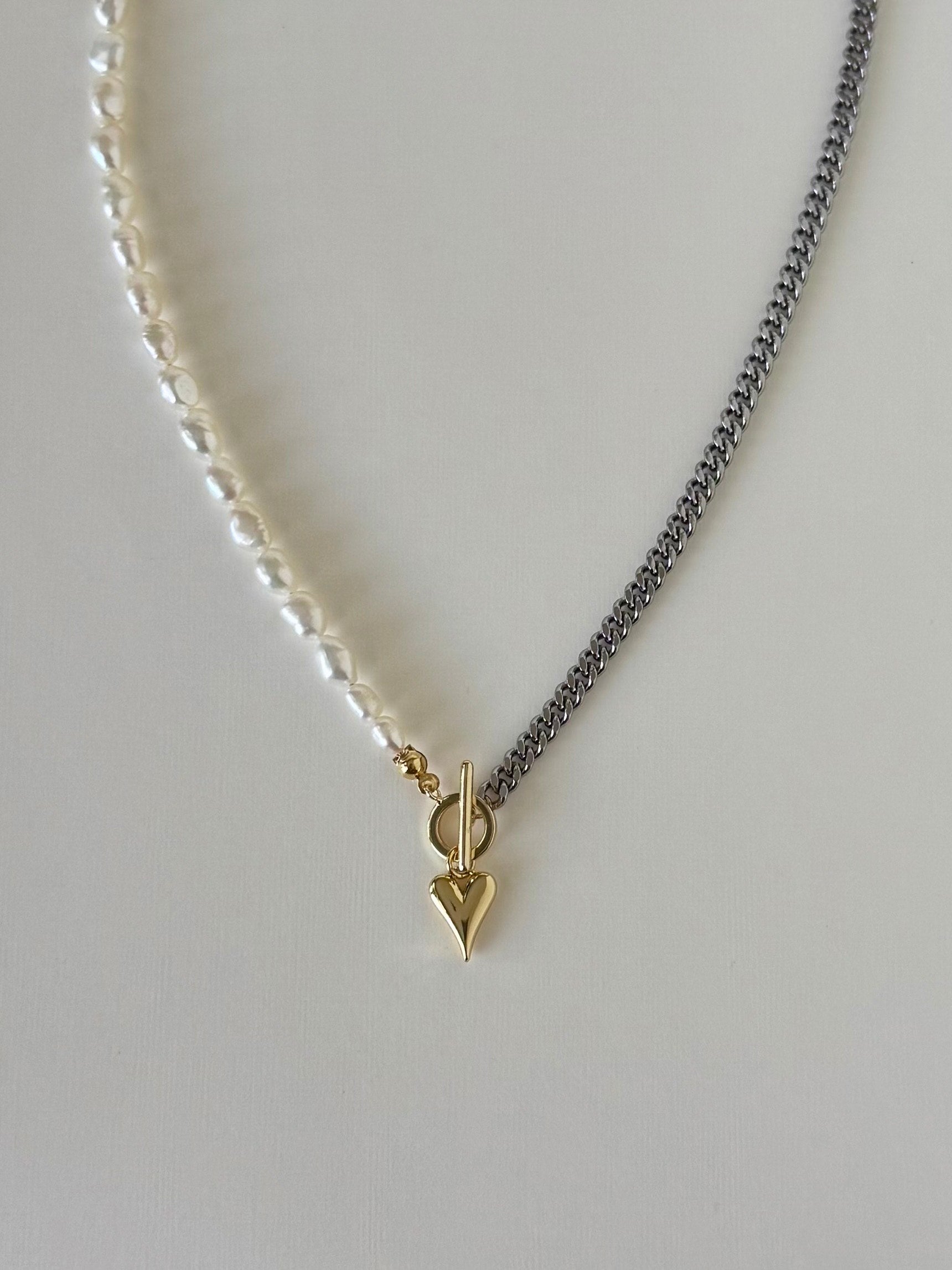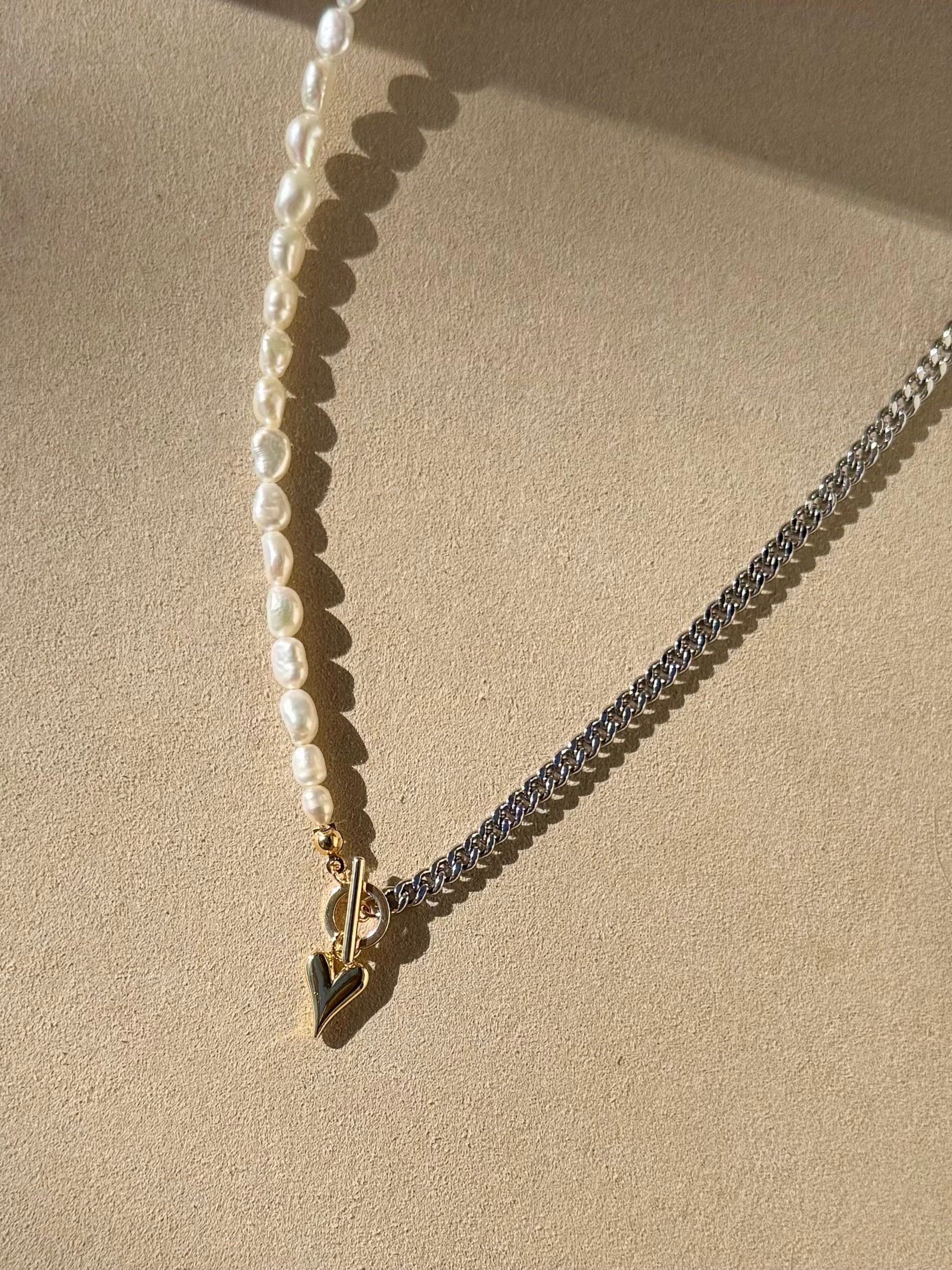 Introducing Unique's little sis (Her) - just as stunning as the statement necklace, but with a dainty touch! Featuring fresh water pearls and the coveted two tone design, this necklace is a subtle showstopper that will elevate any look. Channel elegance and sophistication with our newest addition.