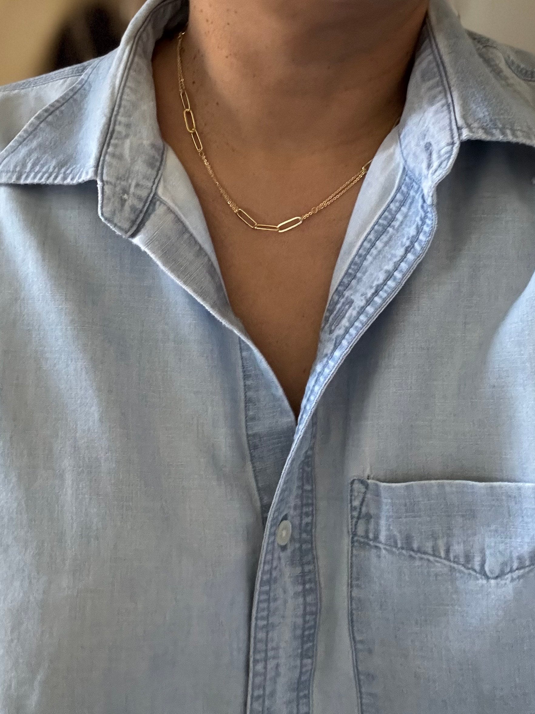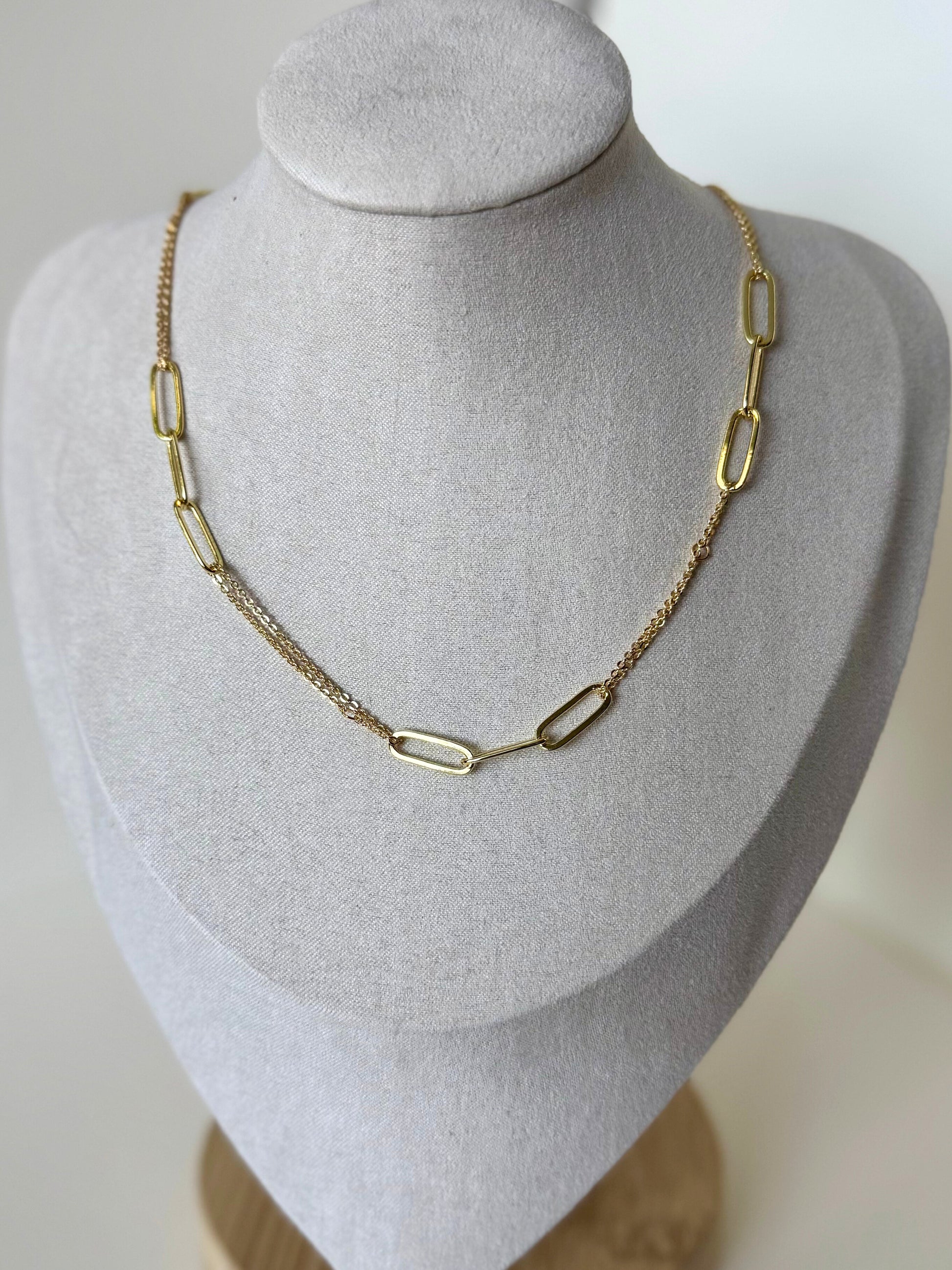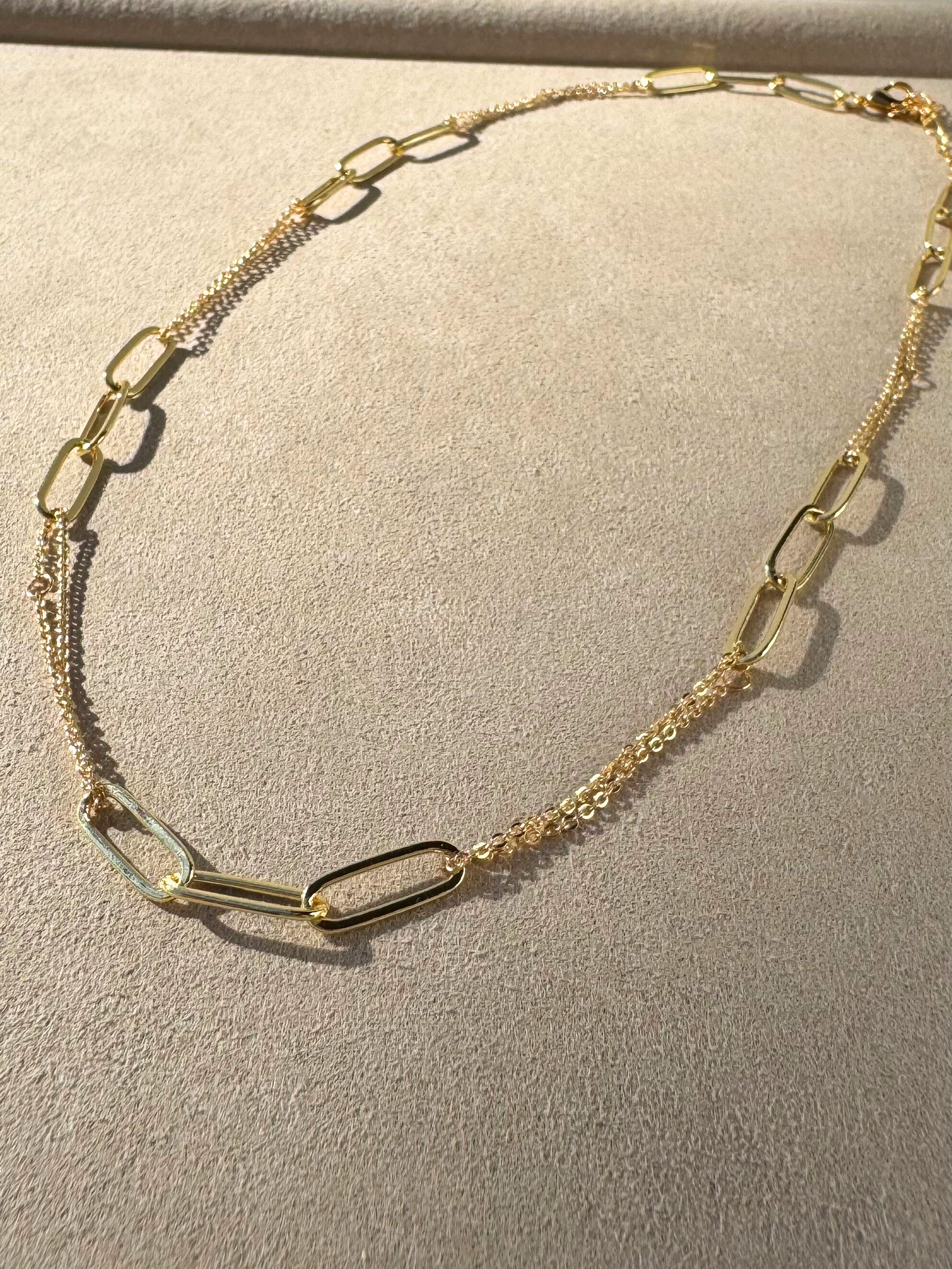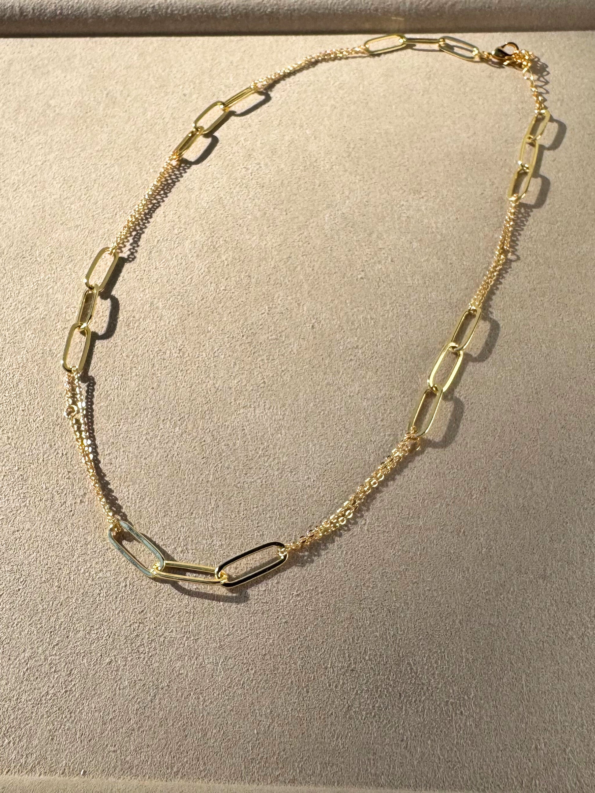 Unleash your inner fashionista with Kris, the perfect accessory to elevate any outfit! Crafted with a unique mixture of 2 chain types, this one-of-a-kind pattern adds a touch of sparkle and sets you apart from the crowd.