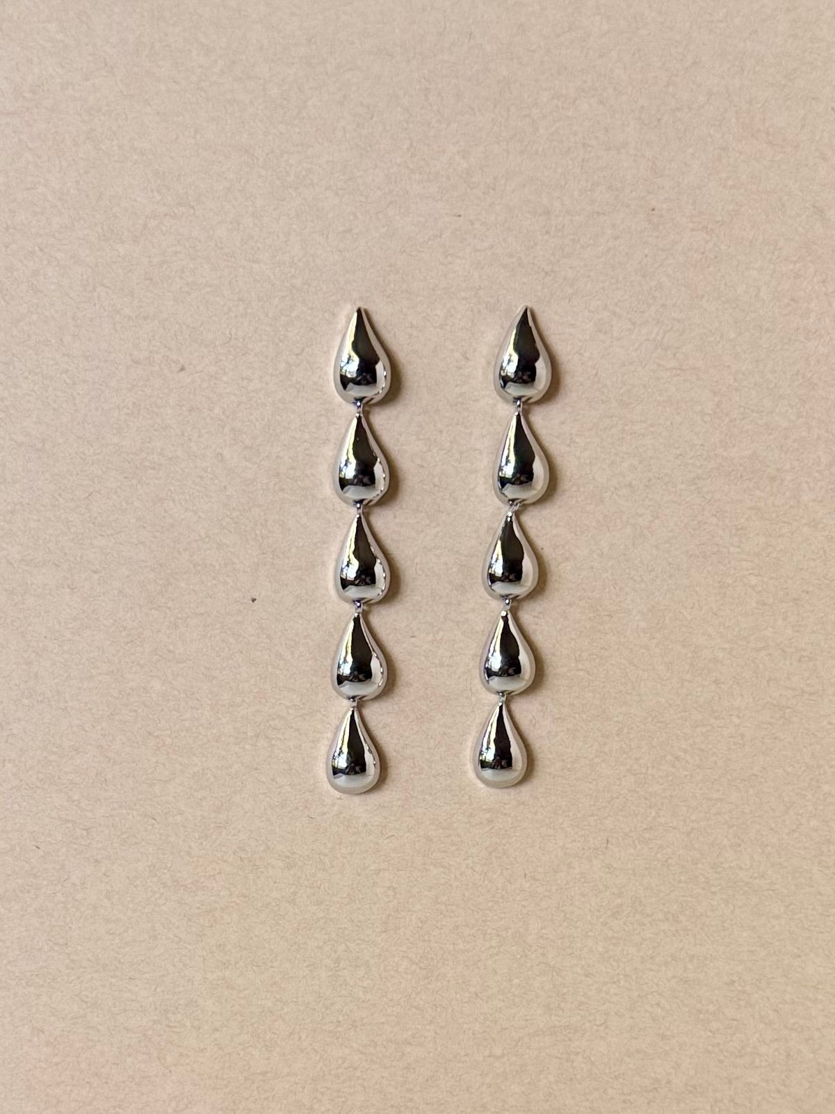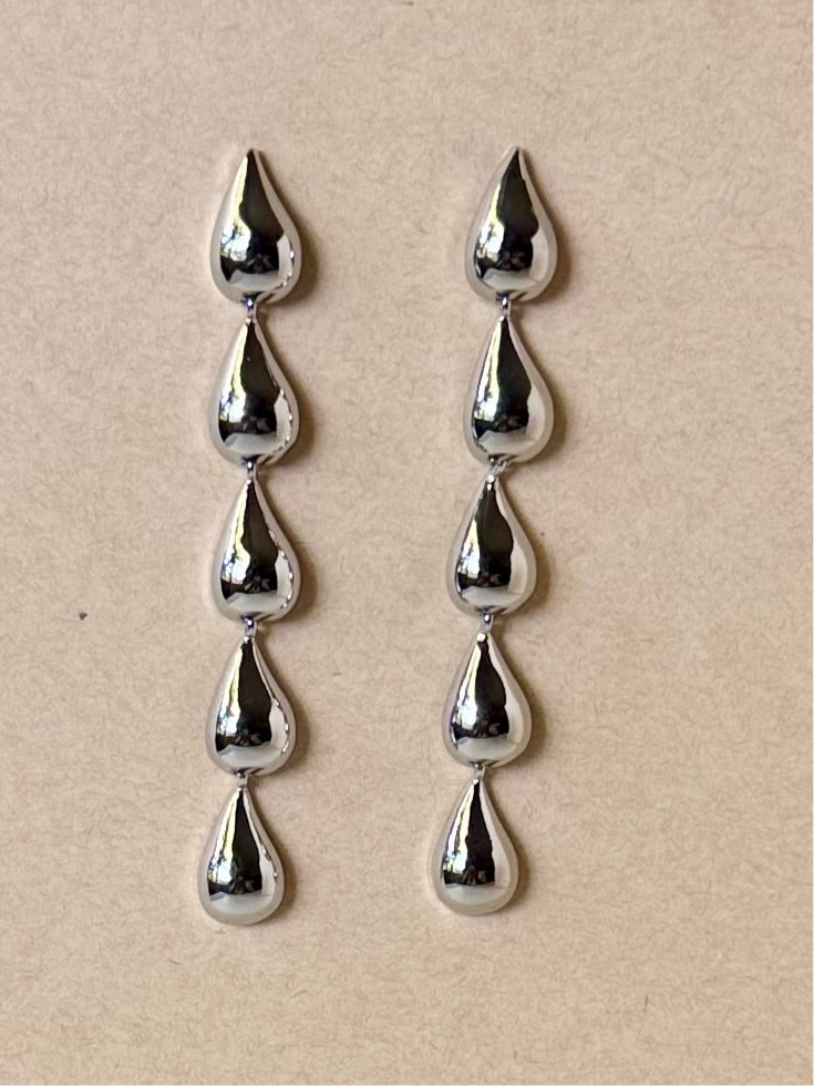 Add a touch of whimsy and sparkle to any outfit with our Teardrop earrings. These playful earrings feature delicate silver teardrops connected together, creating movement and catching the light with every sway. Perfect for any occasion, these earrings will add a touch of fun to your jewelry collection.