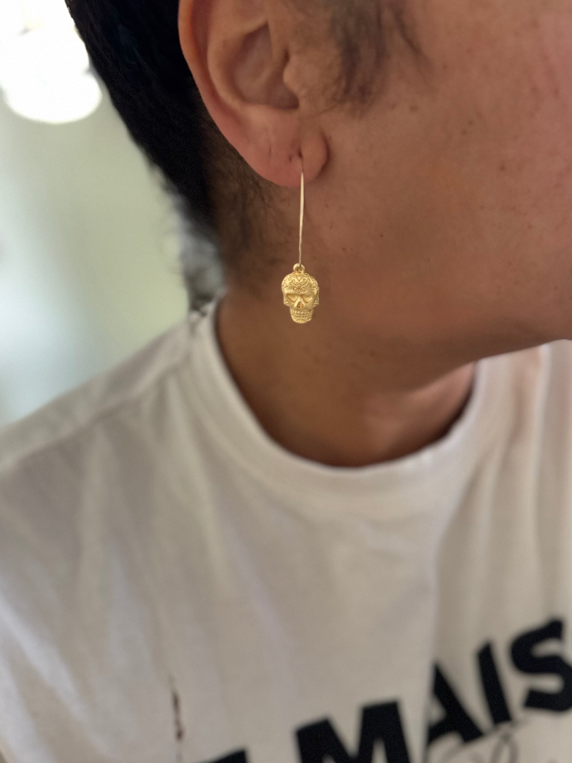 Add a unique touch to any outfit with our matte gold sugar skull hoops! These delicate hoops feature intricately designed sugar skull charms, perfect for standing out all year round. Make a statement and embrace your love for skulls with these one-of-a-kind hoops.