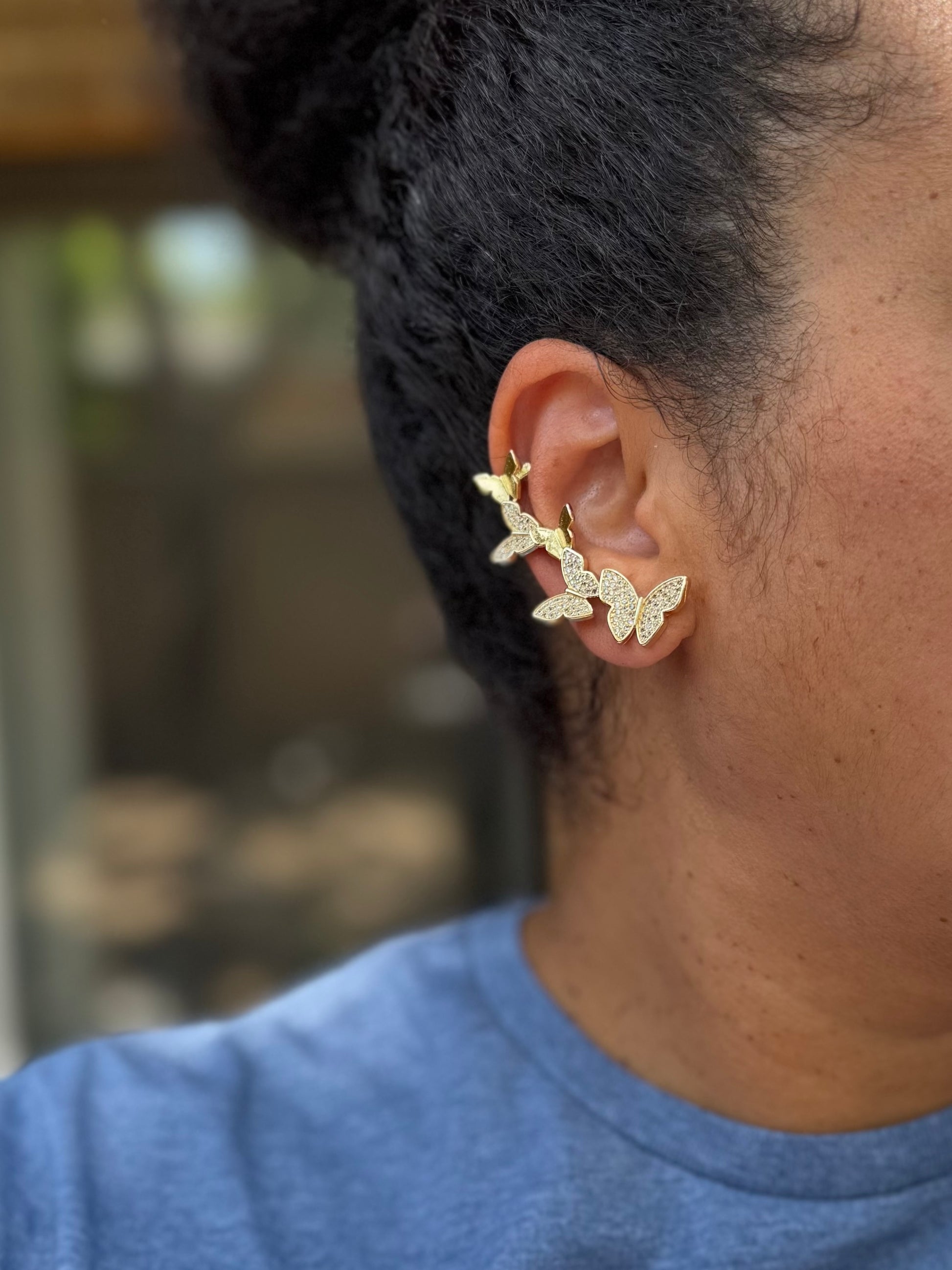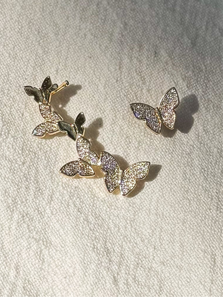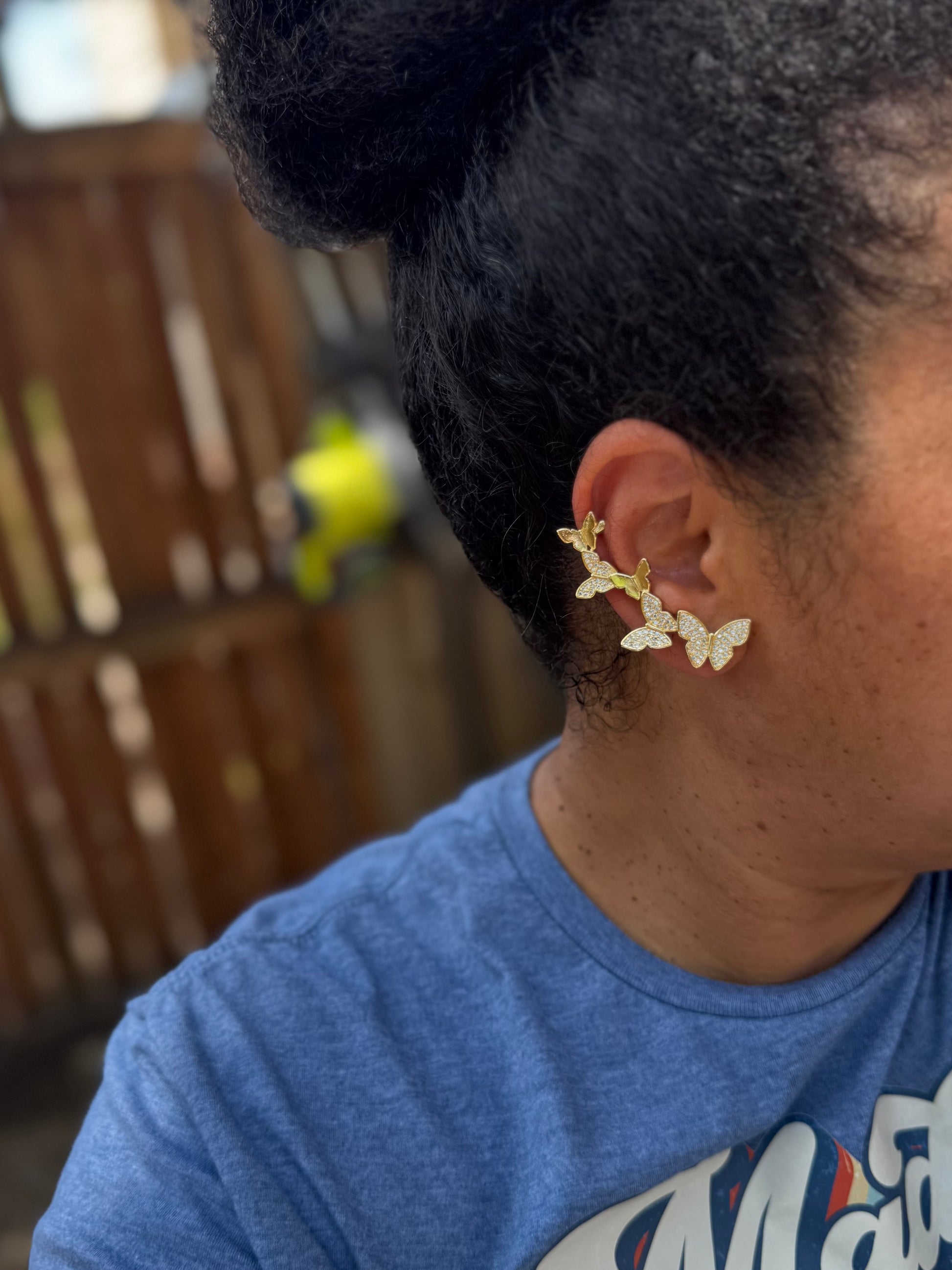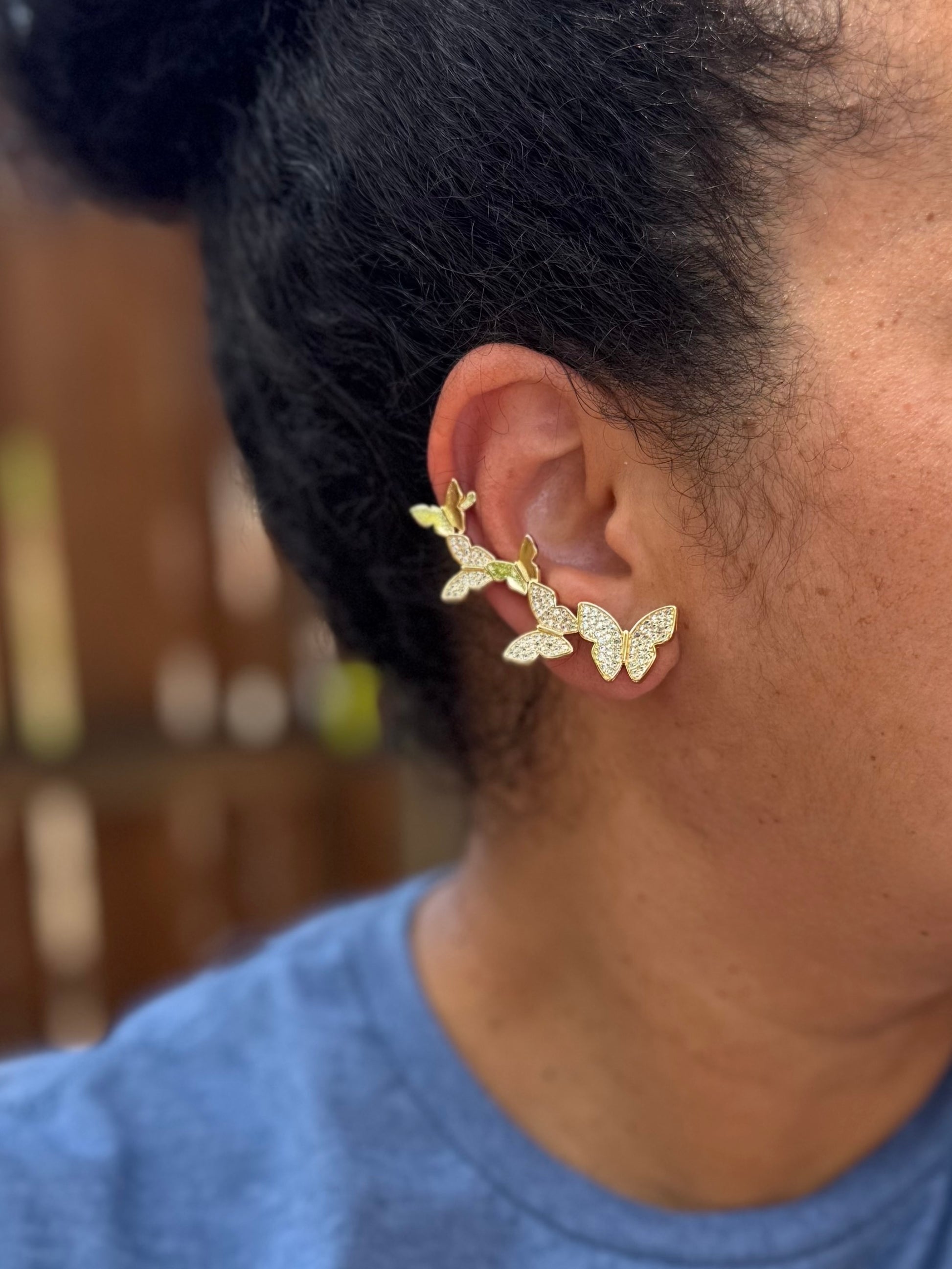 Add a unique twist to your ear game with our Butterfly Ear Climber Set! This fashionable set features a statement ear climber for the right ear and a matching butterfly stud for the left ear. Stand out from the crowd and make a statement with this must-have accessory.